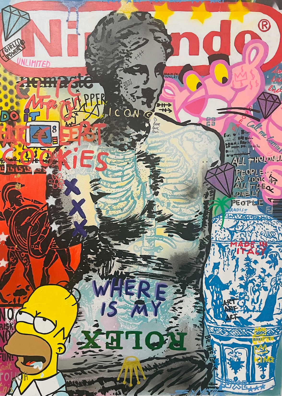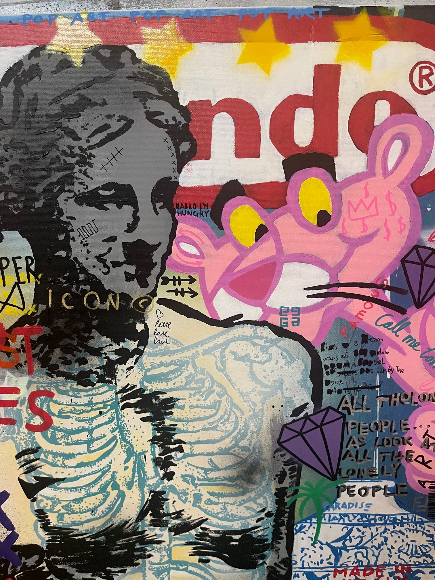 Hollywood Marvel ist eine Hommage der italienischen Künstlerin Simone De Rosa an Jean-Michel Basquiat.