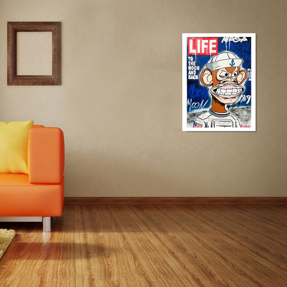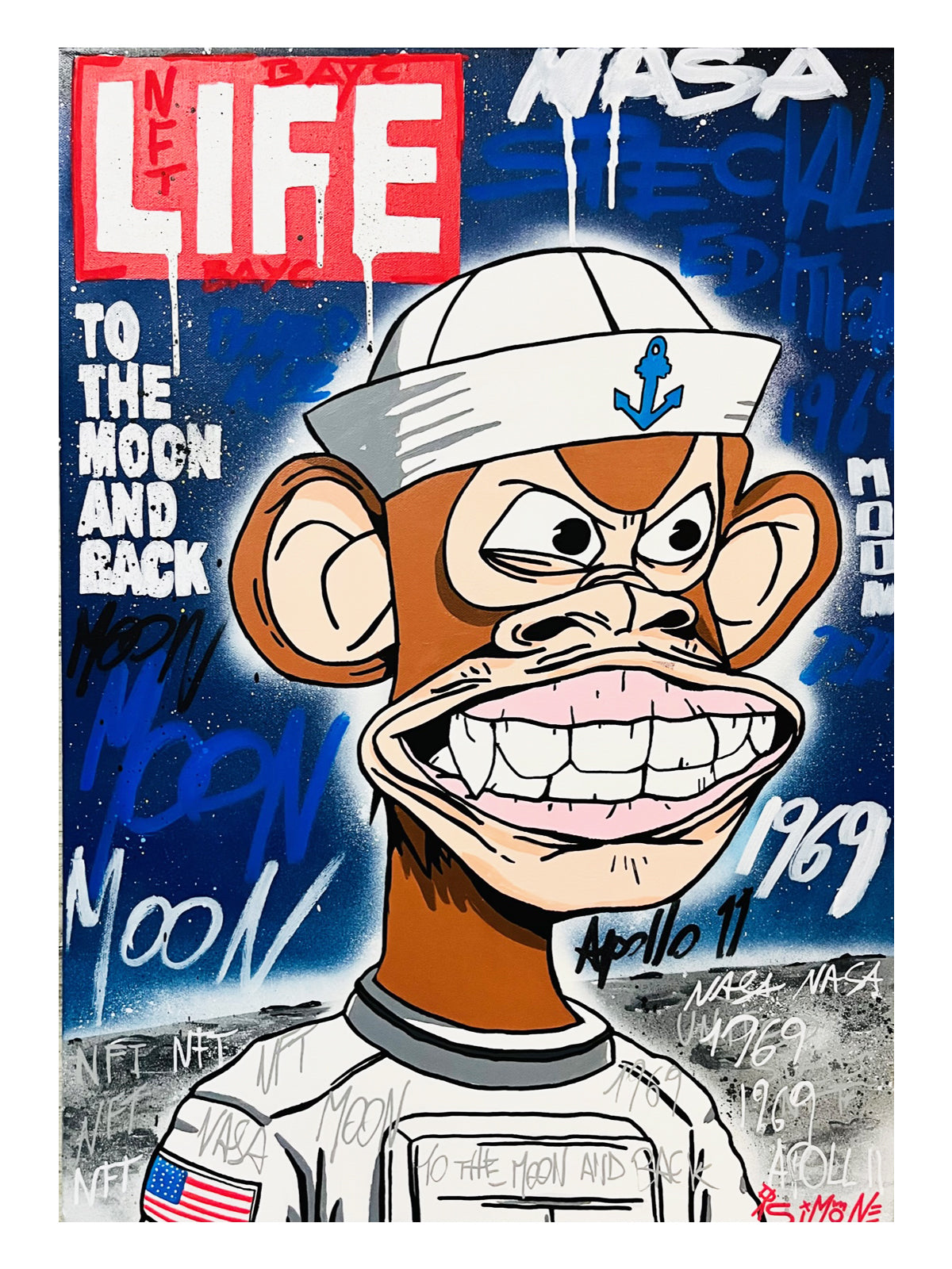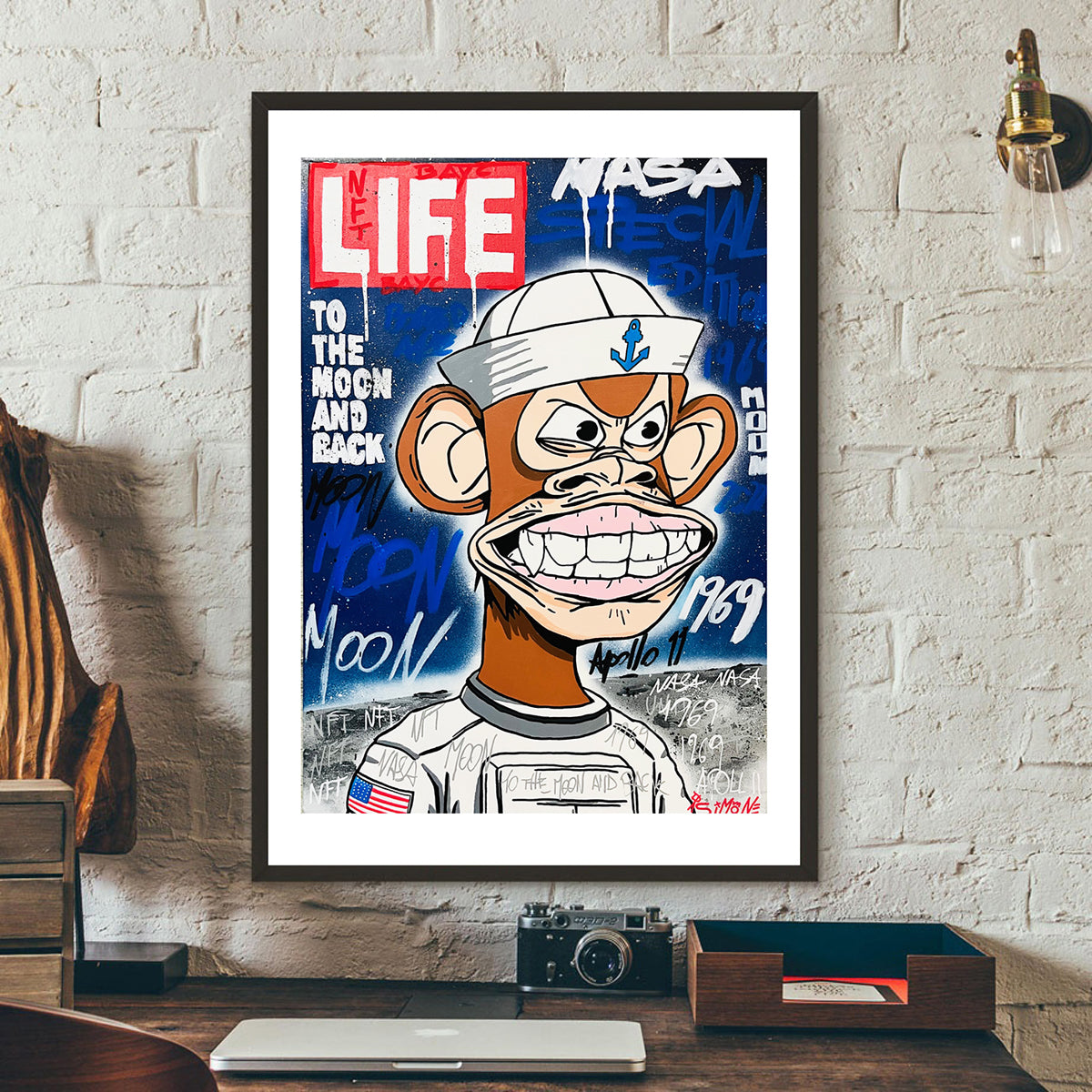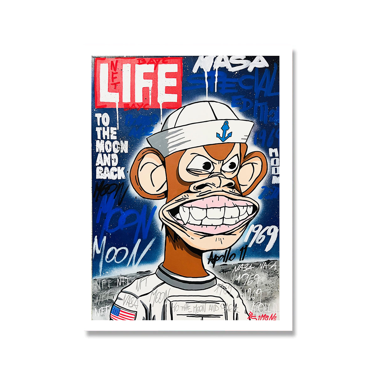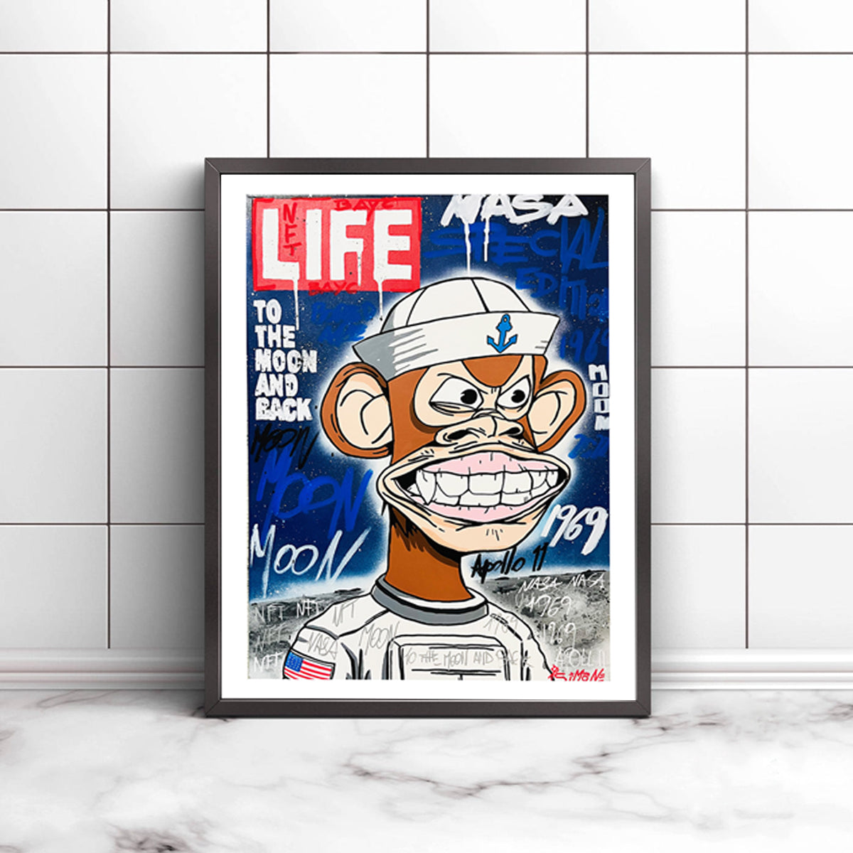 Spezialeffekt für eine limitierte Auflage von Bored Ape im Hintergrund eines Life Magazine