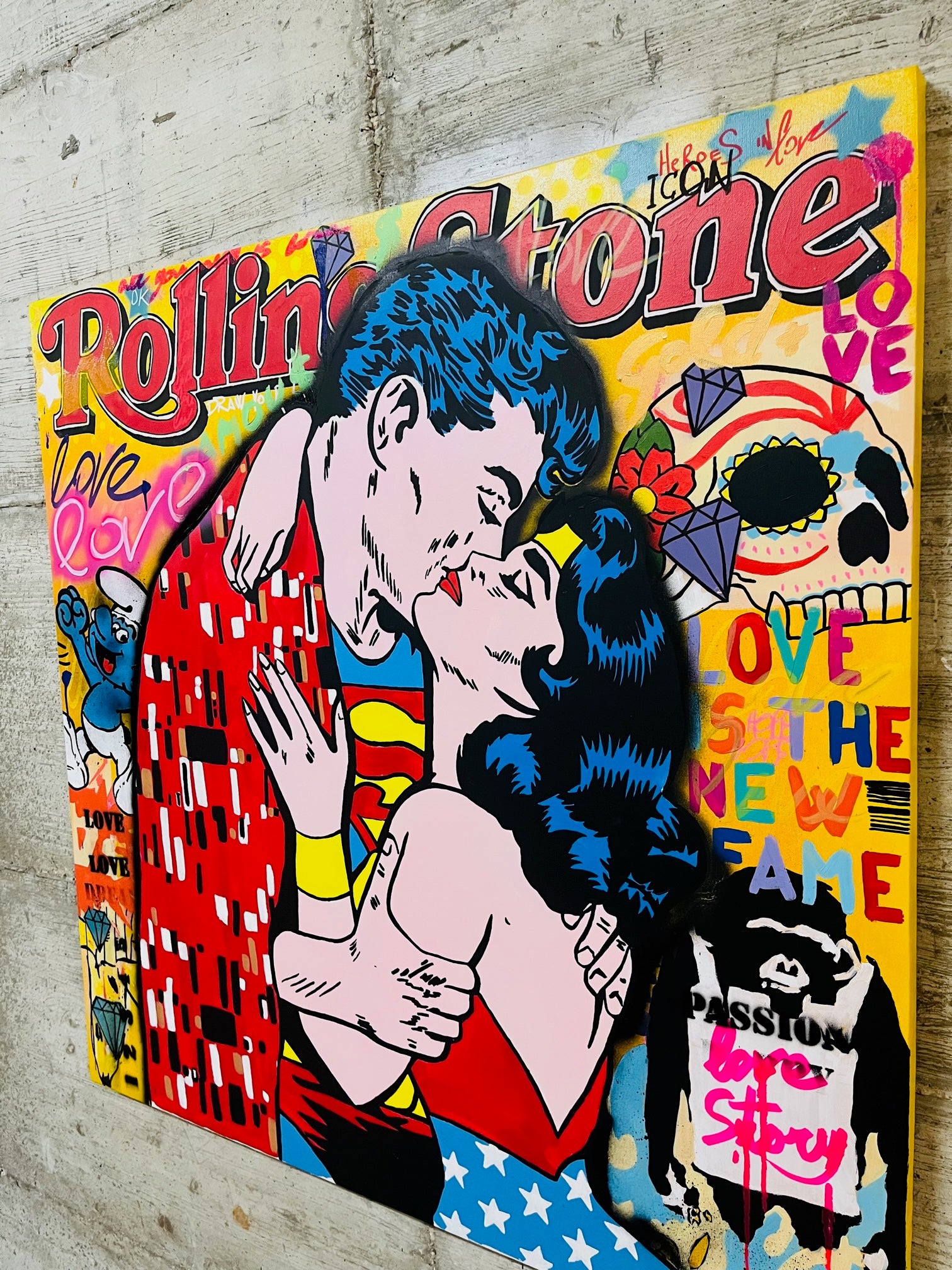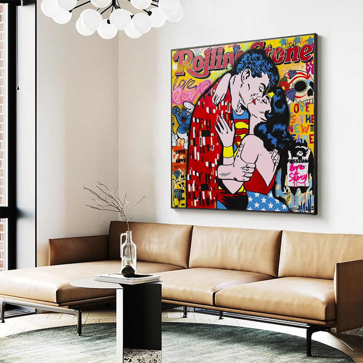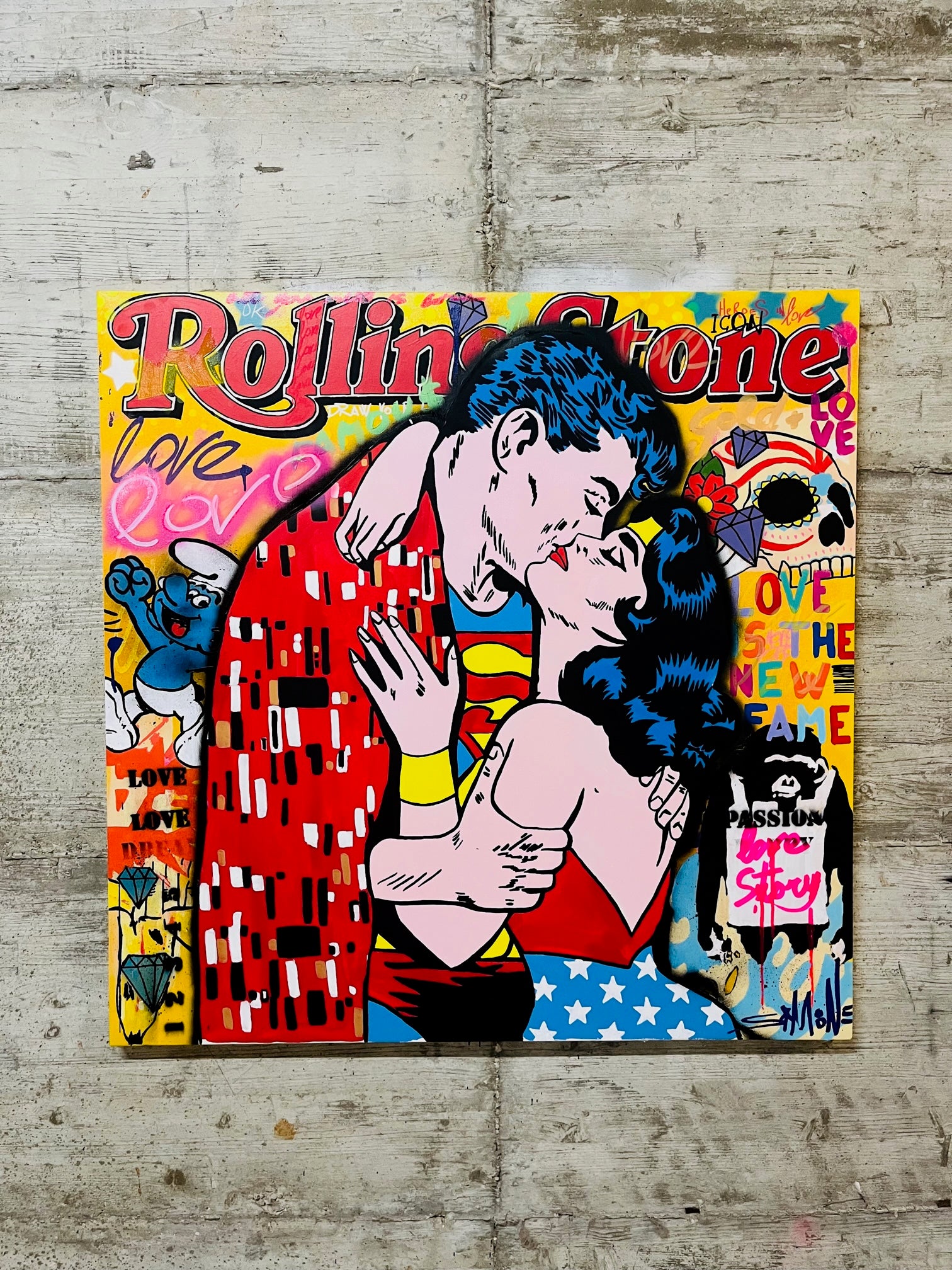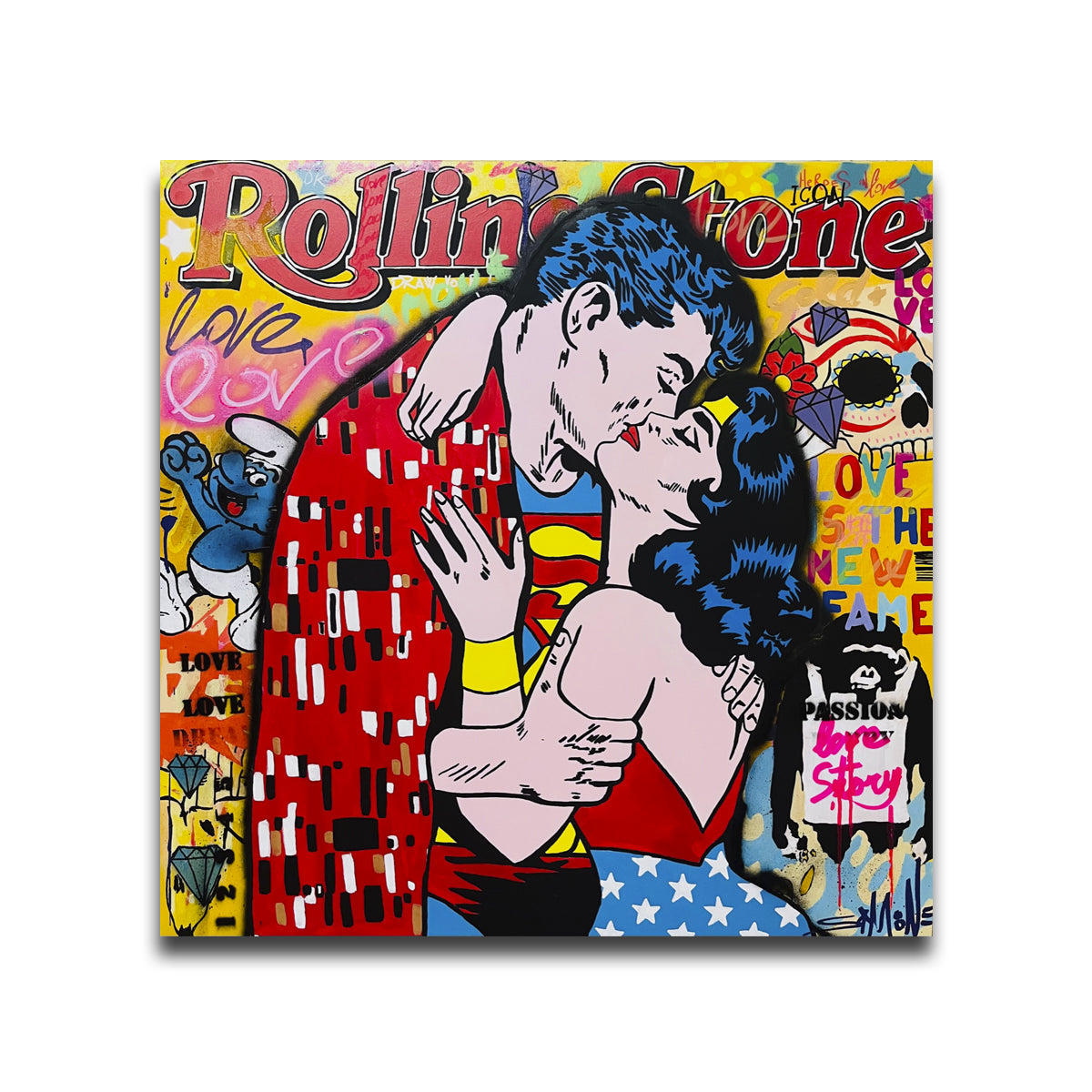 When art history mixes with superhero comics... The love story between Superman and Wonder Woman ends up on the front page of Rollingstone, Klimt's The Kiss is perhaps one of the most romantic works in the art world, and the Italian artist Simone De Rosa depicted it in the most romantic love story in the world of Superheroes. Have love with him