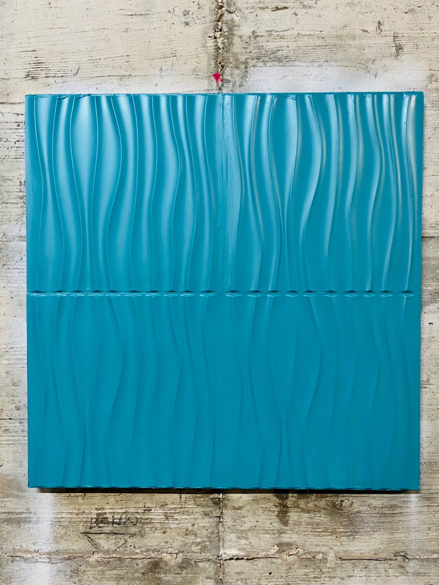 The Italian artist Simone De Rosa began 2024 with studies and experiments with the combination of new materials, moving from a pop and street art style to an Abstract style. This sculpture is a project of shapes in volume, in relief, with bright colors, in this case turquoise is the protagonist..